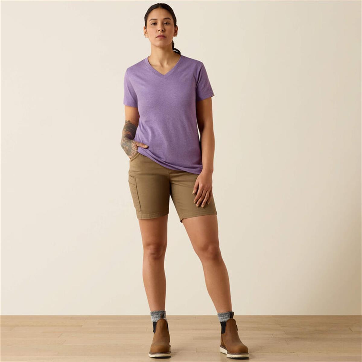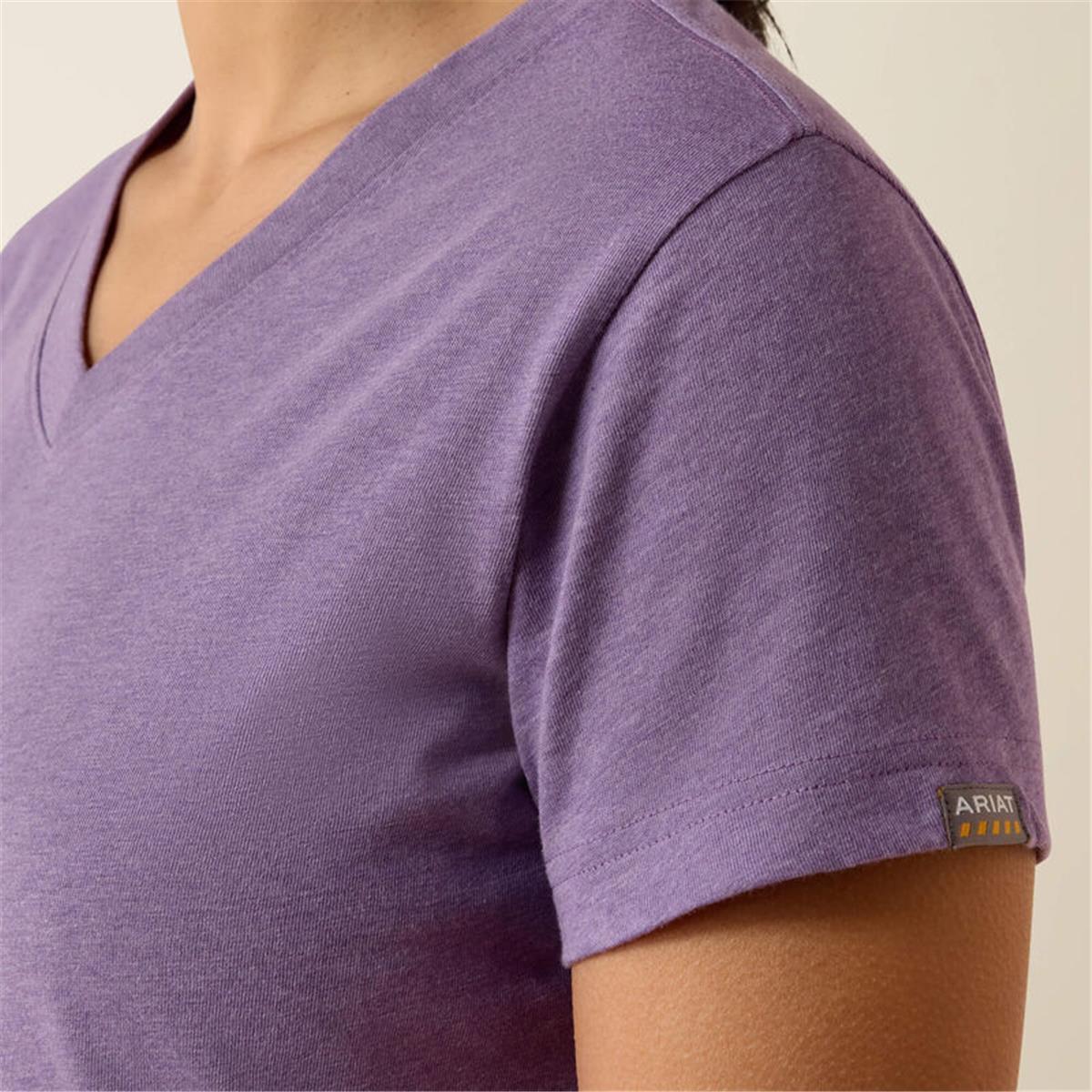 Experience the perfect blend of comfort and durability with the Ariat Mulled Grape Heather Women’s Rebar Cotton Strong V-Neck T-Shirt.This versatile workwear essential features pre-washed, ultra-comfortable yet equally durable jersey fabric with a straight hem that looks as good off the job as it does on it.